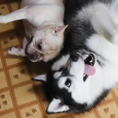 今日のわんちゃんは#フレンチブルドッグ の花子ちゃんと#シベリアンハスキー のベルちゃん🐶