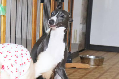 今日から幼稚園スタートの#イタリアングレーハウンド のらんまるくん🐶