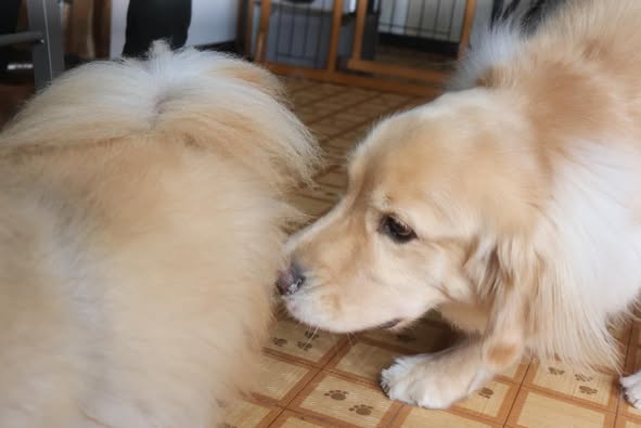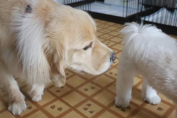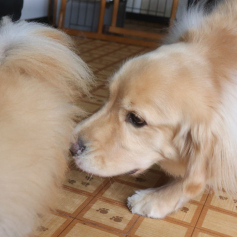 どきどきしながら遊びにきてくれたマロンくんですが、お友達に自分からご挨拶しておりました🤝