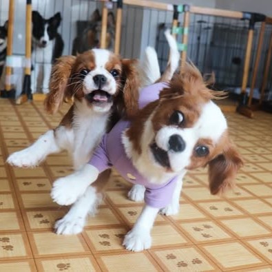今日のわんちゃんは#キャバリア の椿ちゃんとうみちゃん🐶