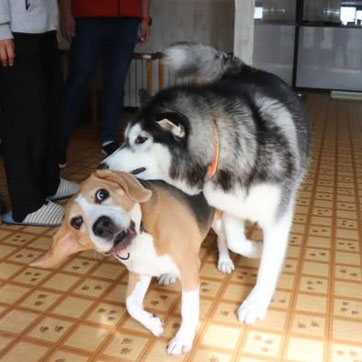 今日のわんちゃんは#ビーグル のラッキーくんと#シベリアンハスキー のベルちゃん🐶